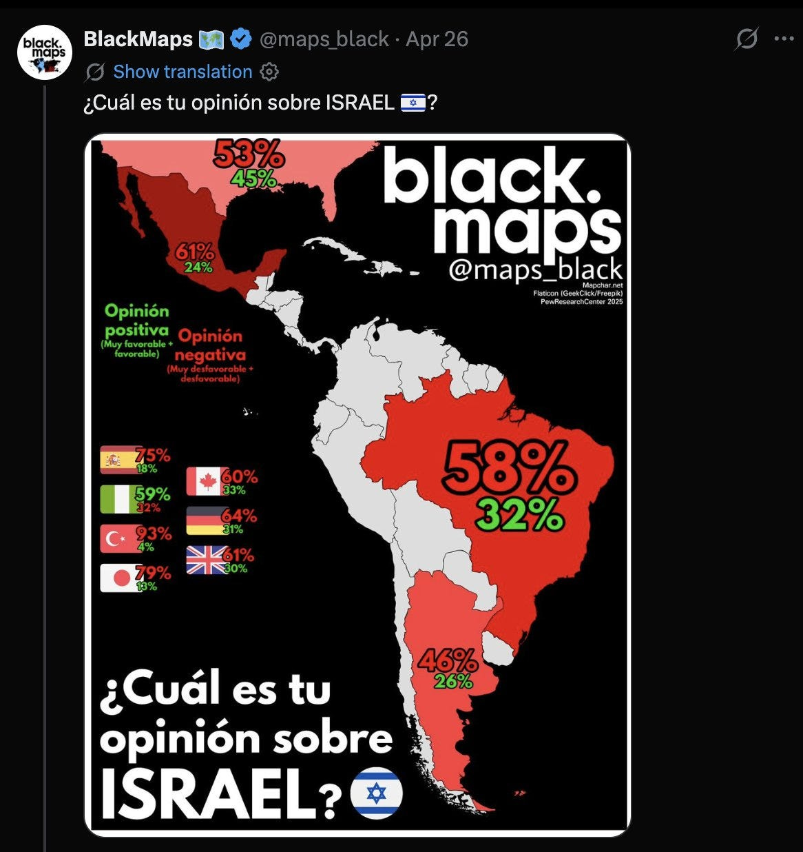 Thirdly, a Spanish-language tweet about Israel from user @maps_black was auto-translated into English by Elon Musk’s AI Grok in a way that added entirely new sentences to the social media post to frame the Zionist state in a sympathetic light.